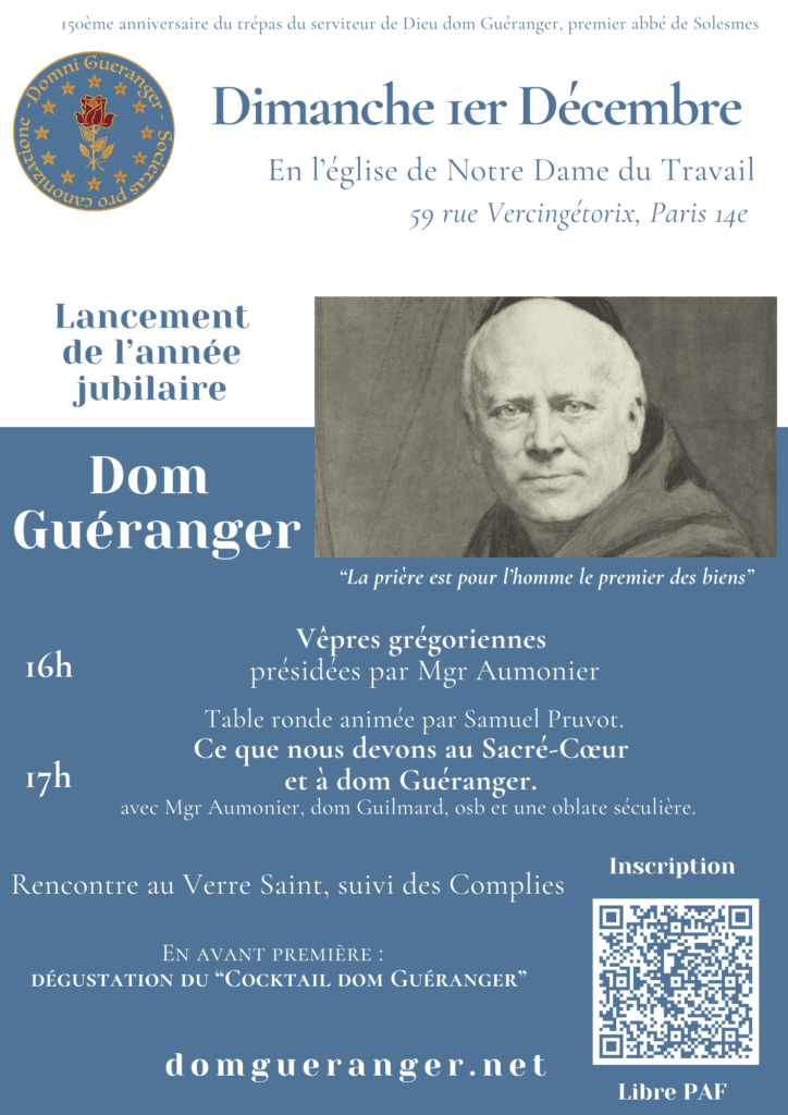 Une préinscription est bienvenue pour permettre l’organisation logistique de l’évènement. Merci beaucoup : https://www.helloasso.com/associations/association-pour-la-canonisation-de-dom-gueranger/evenements/vepres-du-01-12-24.